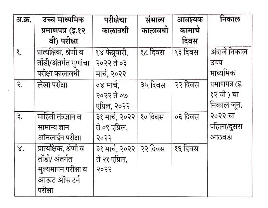 सर्व संबंधित घटकांशी, शिक्षणतज्ज्ञांशी विचारविनिमय केल्यानंतर उच्च माध्यमिक शाळा प्रमाणपत्र (HSC) व माध्यमिक शाळा प्रमाणपत्र (SSC) बोर्ड परीक्षांचे वेळापत्रक आम्ही जाहीर करत आहोत.#SSCexams #HSCexams @msbshse @CMOMaharashtra @MahaDGIPR pic.twitter.com/ZWwQoKAbV8— Prof. Varsha Eknath Gaikwad (@VarshaEGaikwad) December 16, 2021