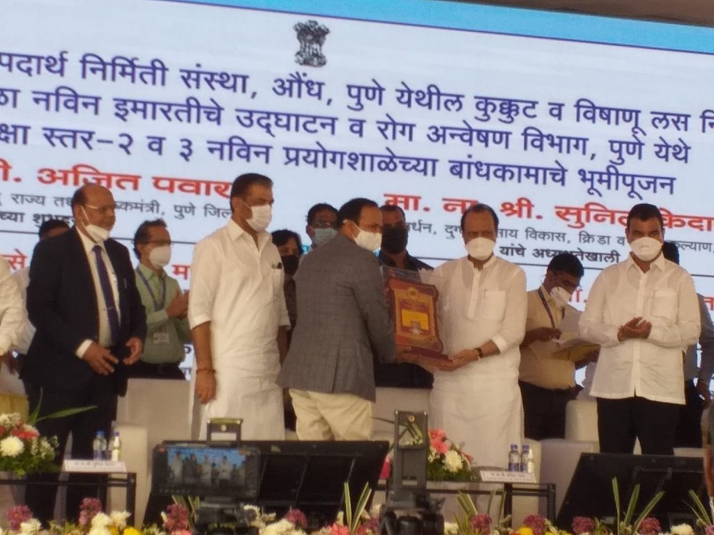 औध, दि. १२( punetoday9news):- पुणे शहरातील औध येथील जैव सुरक्षा स्तर २ आणि ३ नवीन प्रयोगशाळेच्या बांधकामाचे भूमिपूजन आणि कुक्कुट व विषाणू लस निर्मिती प्रयोगशाळा नवीन इमारतीचे उदघाटन उपमुख्यमंत्री अजित पवार यांच्या हस्ते करण्यात आले. यावेळी पशुसंवर्धन मंत्री सुनील केदार, राज्यमंत्री दत्तात्रय भरणे ,जिल्हाधिकारी राजेश देशमुख , सचिंद्र सिंह आयुक्त पशुसंवर्धन , जगदीश गुप्ता, प्रधान सचिव (पदुम) , डाॅ. विनायक लिमये, सहआयुक्त पशुसंवर्धन व अन्य प्रशासकीय अधिकारी उपस्थित होते.