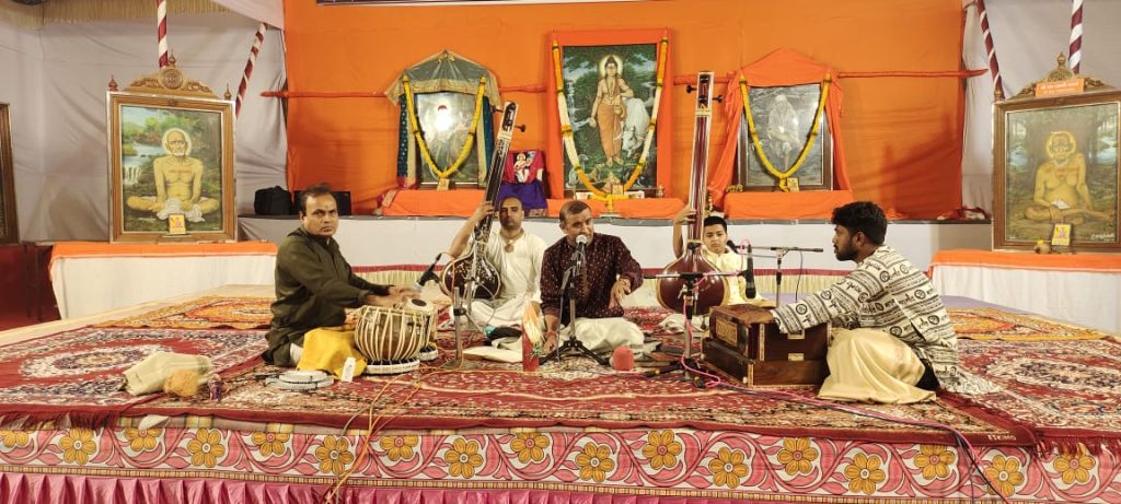 पहिल्या सत्राची सुरुवात करताना त्यांनी राग दुर्गा मधील “सखी मोरी रूम झूम,,बादल गरजे बरसे” आणि ” माता भवानी, काली दुर्गा गौरी” ही झपतालातील बंदिश अतिशय बहारदारपणे सादर केली.त्यांनी खालील भक्तीगीते सादर केली.