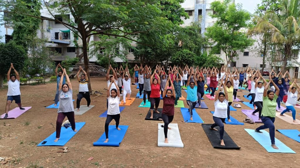 पिंपळे गुरव,दि.२१ :- “जागतिक योग दिन २०२३” च्या निमित्ताने बुधवार दि. २१ जून रोजी, योगगुरू मेघा झणझणे आणि योगगुरू मीना पवार यांच्या मार्गदर्शनाखाली श्री गणेश सहकारी बँकचे संचालक अभय नरडवेकर, पोलिस खात्यातील योगेश ठोंबरे, भास्कर खोडदे, शेडगे यांच्या सहकार्याने सकाळी ७.३० ते ८.३० दरम्यान संपूर्ण योगपरिवाराने योगदिन मोठ्या उत्साहात साजरा केला. जवळपास १०० साधकांनी ह्या उपक्रमात आपला सहभाग नोंदविला.