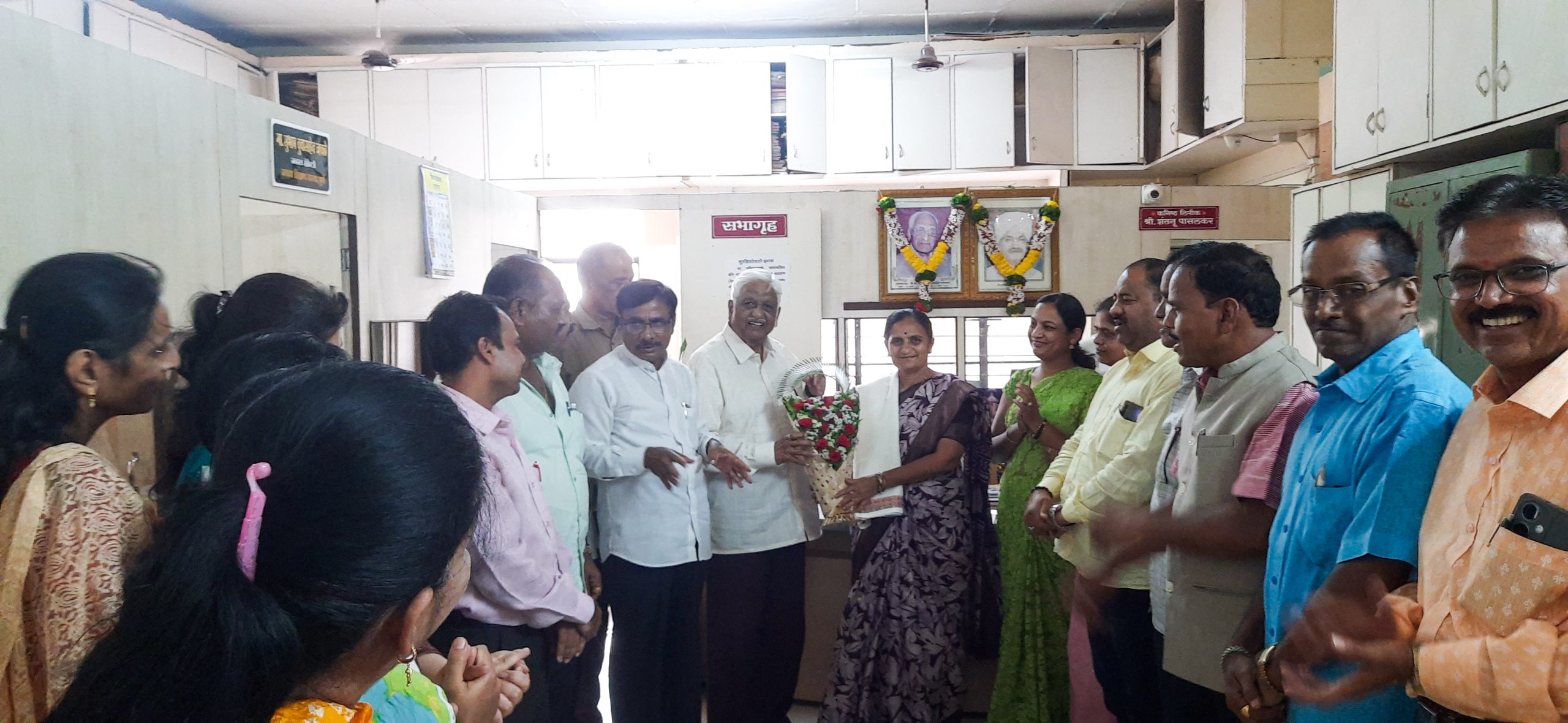 माध्यमिक विभागाच्या मुख्याध्यापिका नंदा काकडे यांना सन्मानित करताना जनता शिक्षण संस्थेचे अध्यक्ष जयप्रकाश जगताप व उपस्थित मान्यवर.