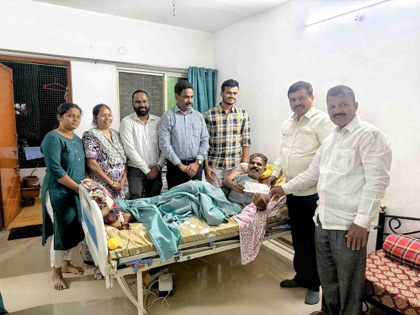 जगताप यांनी रुग्णाच्या घरी भेट देऊन विचारपूस केली आणि वैद्यकीय उपचारासाठी मदतीचा धनादेश सुपूर्द केला. स्थानिक नागरिकांनी या संवेदनशील भूमिकेबद्दल राजेंद्र जगताप यांचे कौतुक केले आहे.