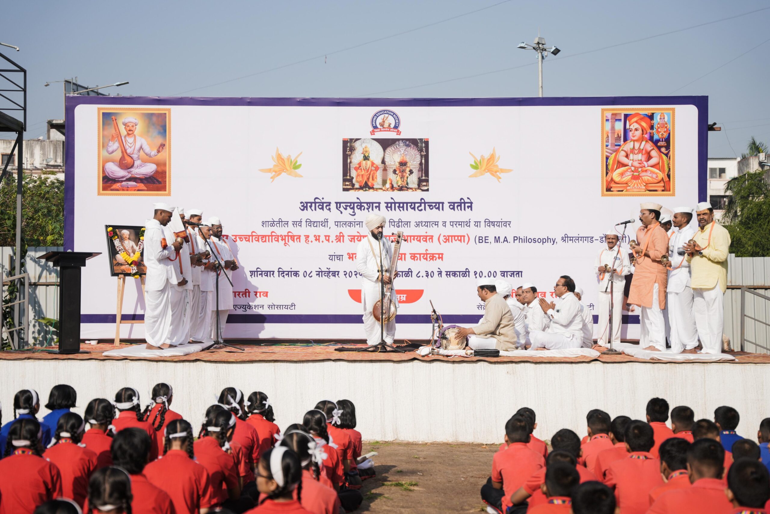 जुनी सांगवीतील अरविंद एज्युकेशन सोसायटीच्या वतीने कीर्तनकार ह .भ. प. जयेश महाराज भाग्यवंत यांच्या कीर्तन सेवेचे आयोजन केले होते. त्यांनी इंग्लिशमधून कीर्तनसेवा दिली. ह.भ.प. उद्धव महाराज गोळे, ह.भ.प. सोमनाथ पाडाळे यांची त्यांना साथ लाभली. यावेळी संस्थेच्या अध्यक्षा आरती राव, सचिव प्रणव राव, ह. भ. प. संजय देवरे, ह. भ. प. गहिनीनाथ कळमकर, ह.भ.प. अर्जुन गांधिले, सौरभ शिंदे, सांगवी ग्रामस्थ, पालक, विद्यार्थी मोठ्या संख्येने उपस्थित होते.