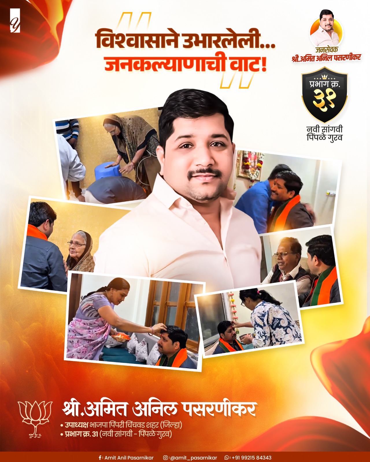 “आपल्या प्रभागातील प्रत्येक नागरिक ही माझी जबाबदारी आहे. सेवाभावाने आणि प्रामाणिकपणे विकास करण्याचे वचन देतो,” अशी ग्वाही अमित पसरणीकर यांनी दिली.