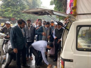 महाविद्यालयाचे प्राचार्य डॉ. बाळकृष्ण झावरे यांनी उपस्थित मान्यवरांचे स्वागत केले व वाहन चाचणी प्रमाणपत्र नागरिकांना प्रदान केले .