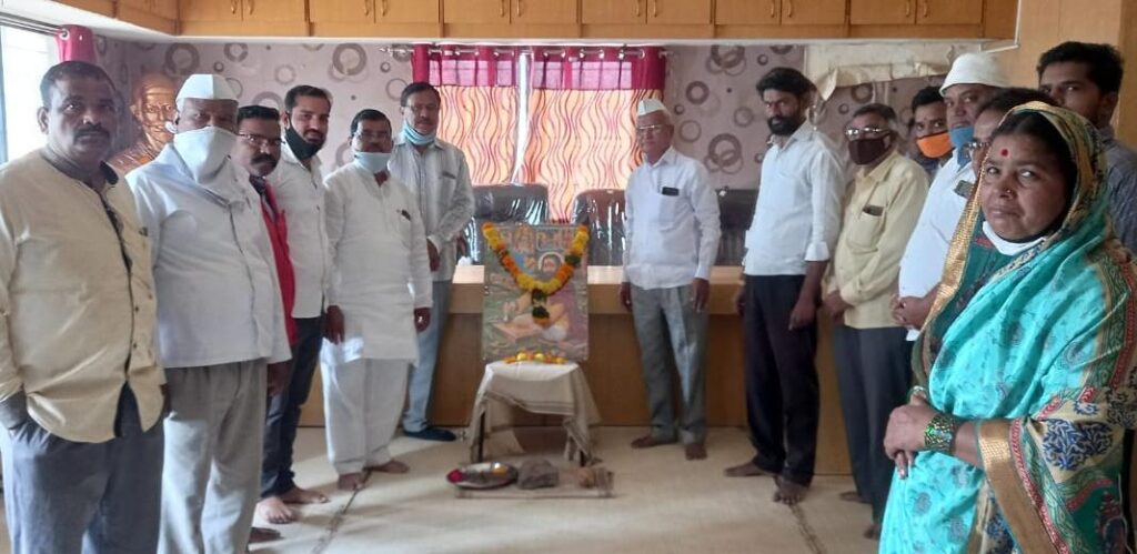 यावेळी जिल्हा परिषदेचे माजी उपाध्यक्ष शिवाजी आबा सोनवणे, सरपंच दिलीप देशमुख, माजी पोलीस अधिकारी अरुण शिंदे, ग्रामपंचायत सदस्य बापू कदम या मान्यवरांच्या हस्ते प्रतिमा पूजन करण्यात आले.